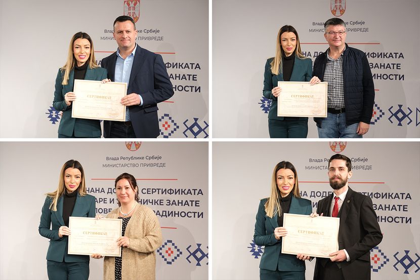 - Ovi sertifikati su zvanično priznanje naše države da je vaš rad od nacionalnog značaja, jedno savremeno 'majstorsko pismo' i pečat poverenja - temelj dalje saradnje i podstrek da svoje zanate razvijate, unapređujete i kroz njih predstavljate našu tradiciju i ono najbolje što Srbija ima - dodala je.