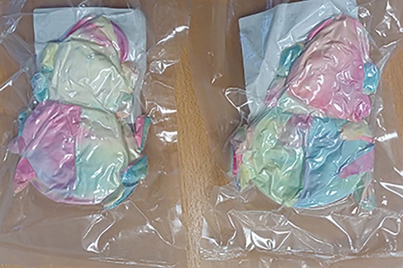 Kako se navodi, u pitanju je plišana igračka živih boja, sa crnim plastičnim očima.