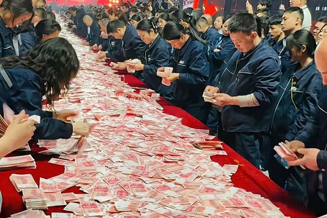 Jedna kineska kompanija iznenadila je svoje zaposlene neobičnom proslavom kraja godine – na stolove je iznela čak 26 miliona dolara u gotovini (oko 22 miliona evra) i dozvolila im da ponesu kući koliko mogu.